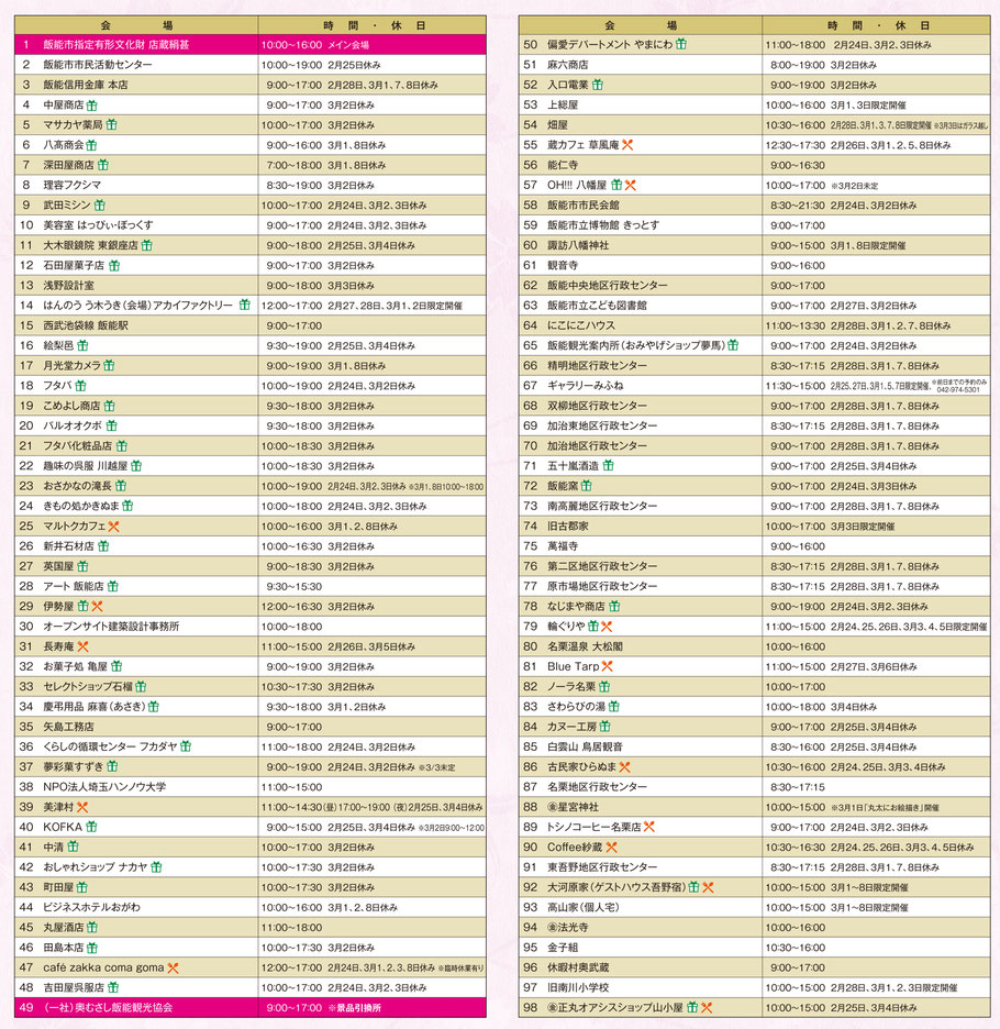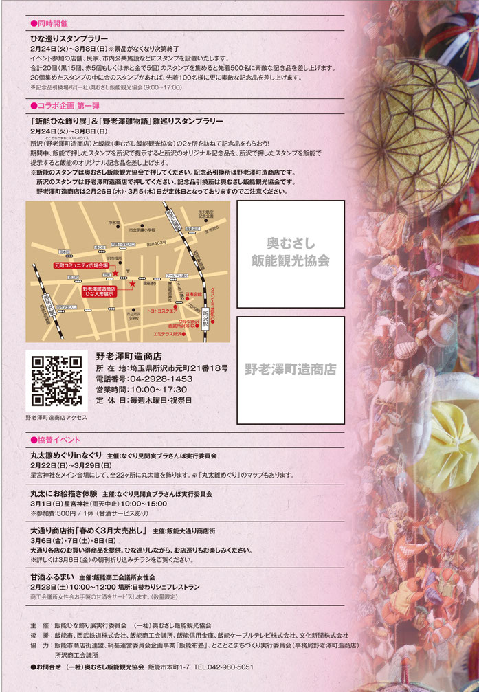 後援:飯能市、西武鉄道株式会社、飯能商工会議所、飯能信用金庫、飯能ケーブルテレビ株式会社、文化新聞株式会社
